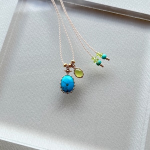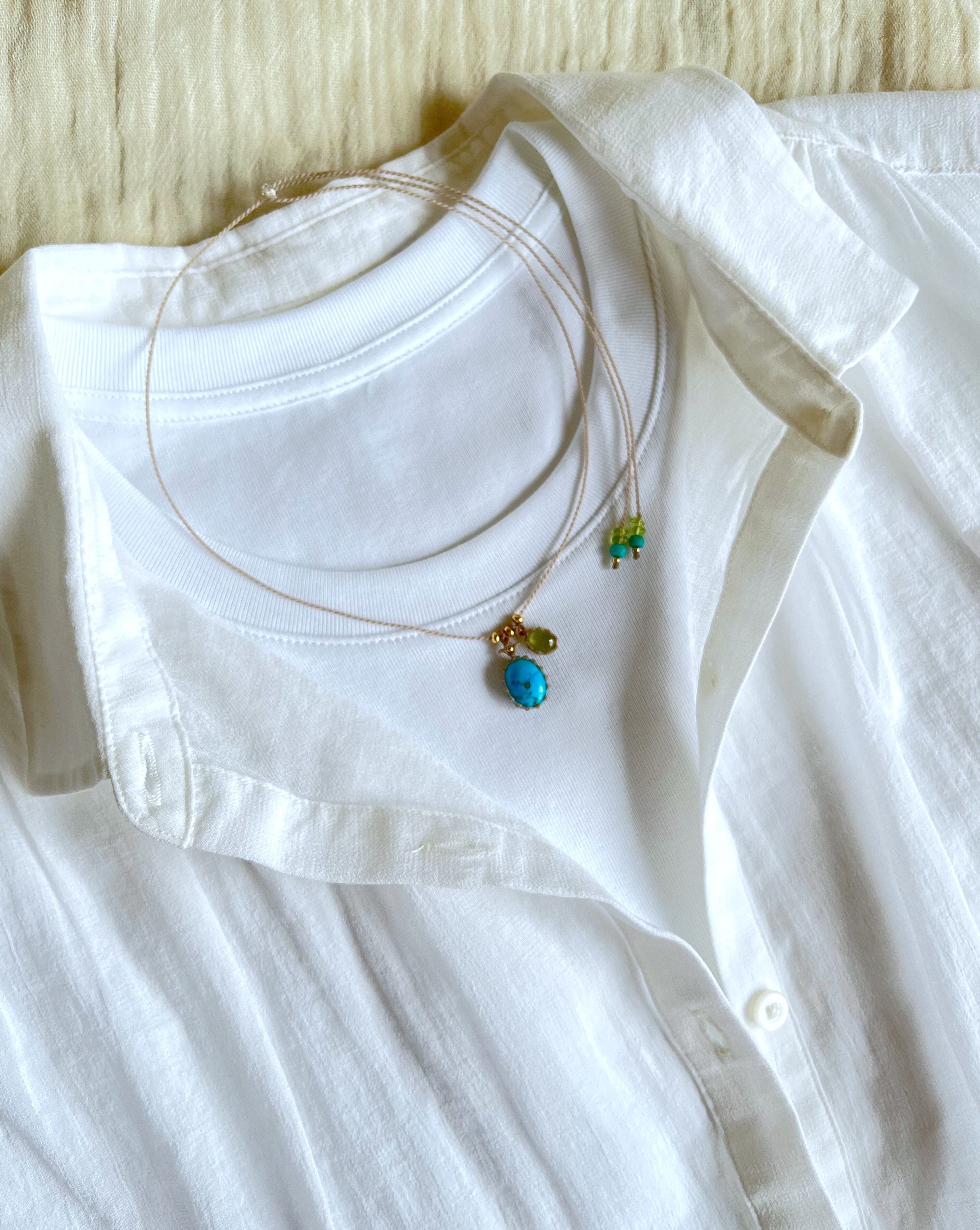 天然石:ターコイズ(イラン産)、ペリドット(アフガニスタン産)