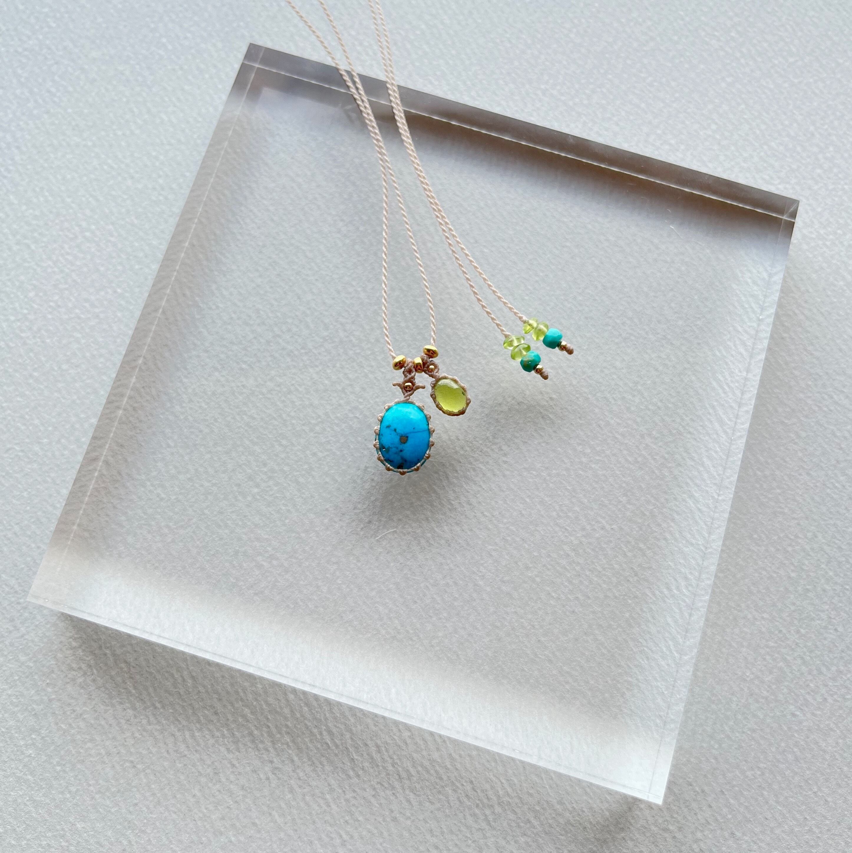 ペルシアンターコイズとペリドットのマクラメ編み 天然石ネックレス