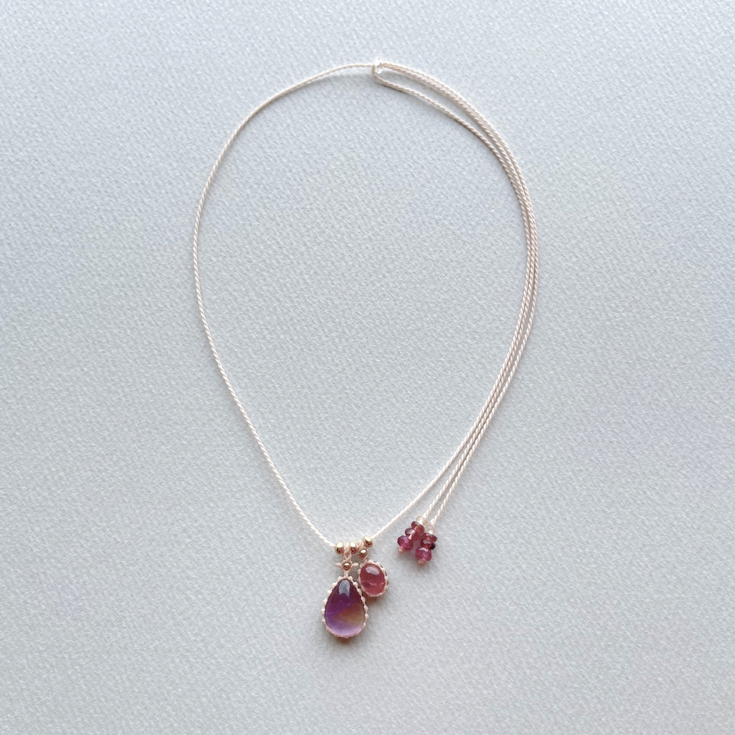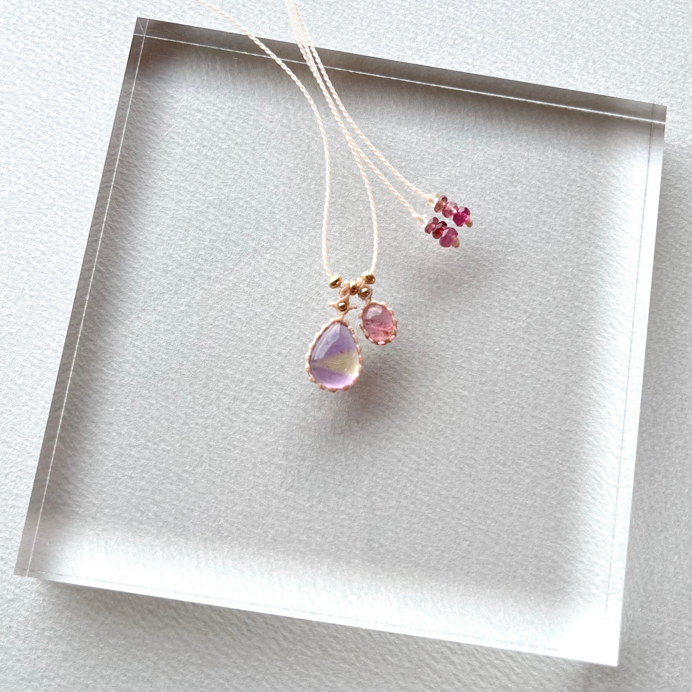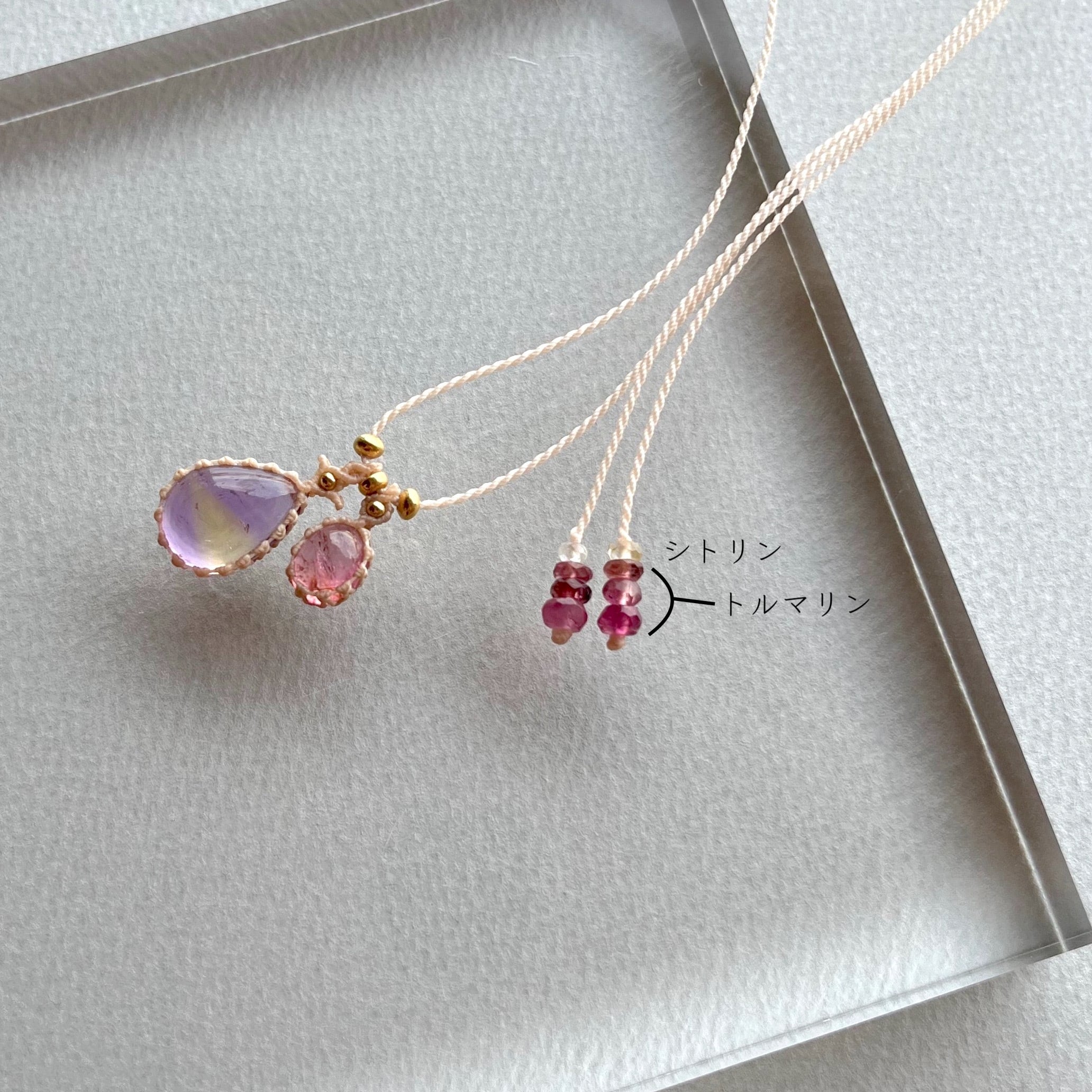 アメトリンとトルマリンのマクラメ編み 天然石ネックレス