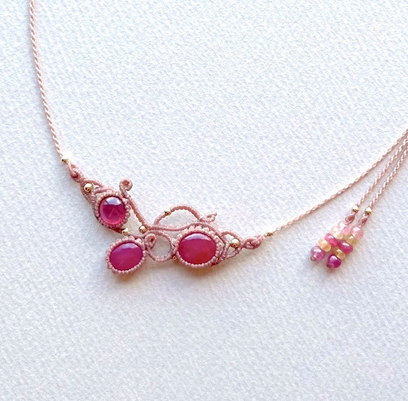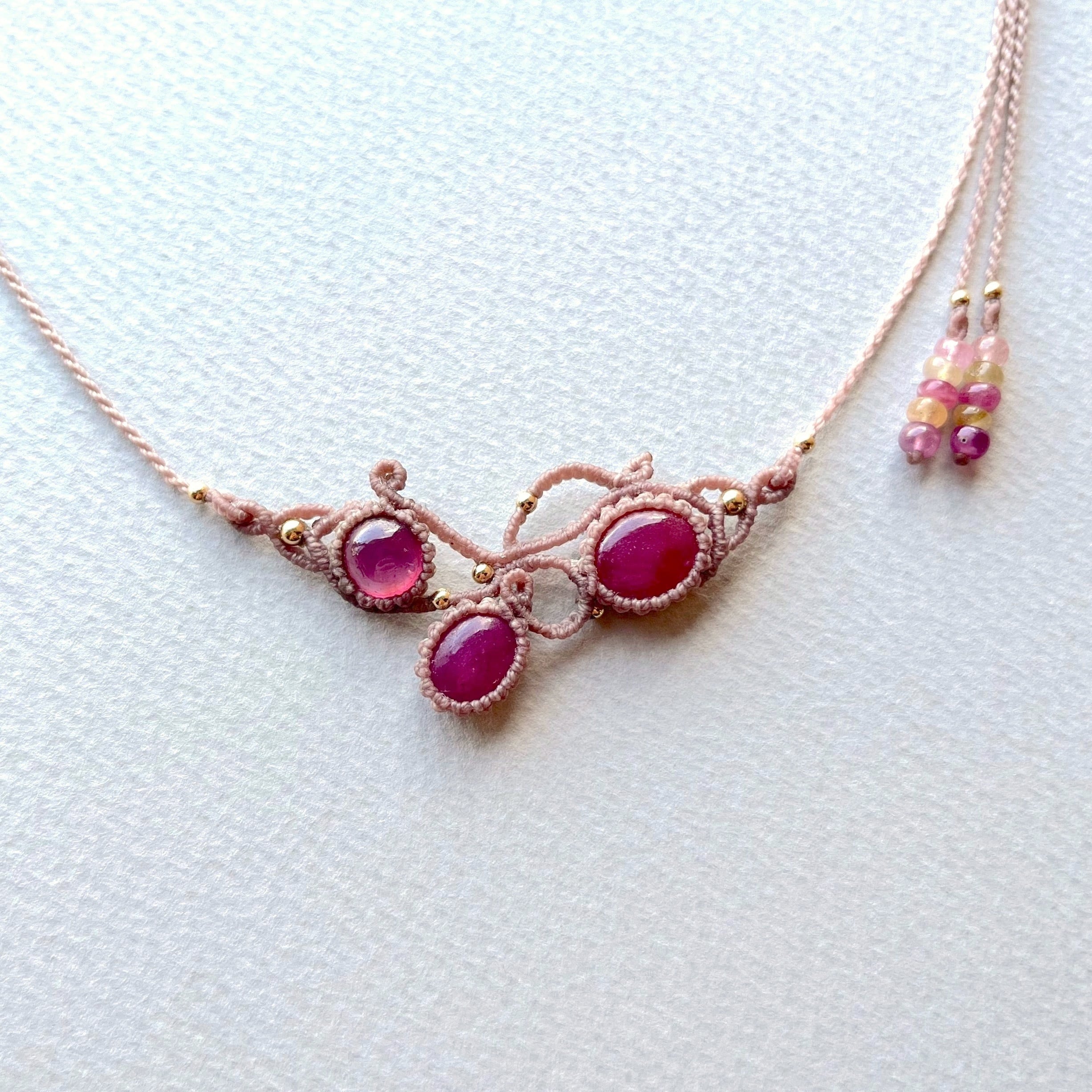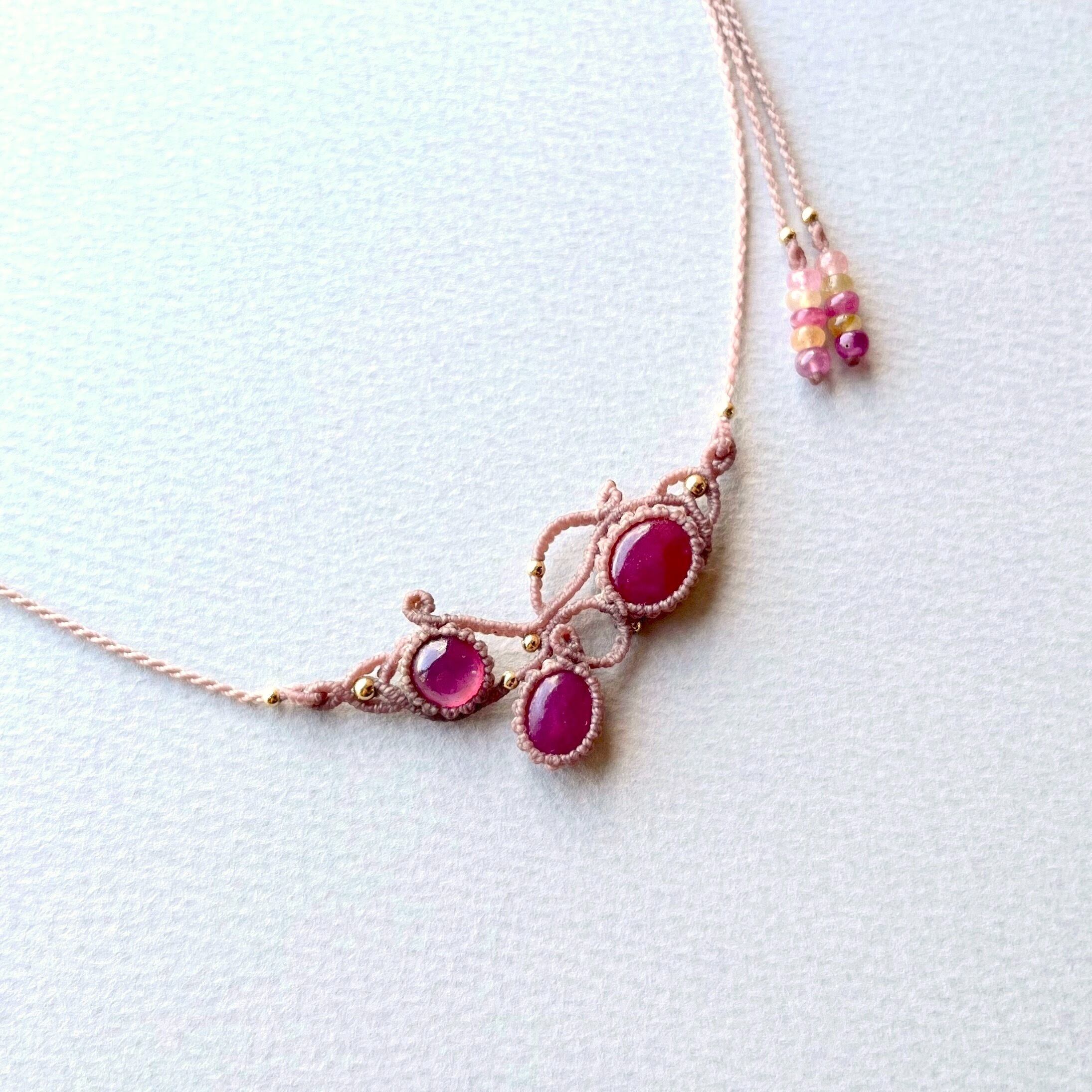 【お客様オーダー品】ルビーのマクラメ編み 天然石ネックレス