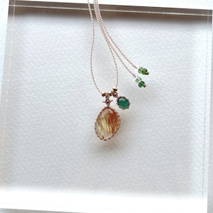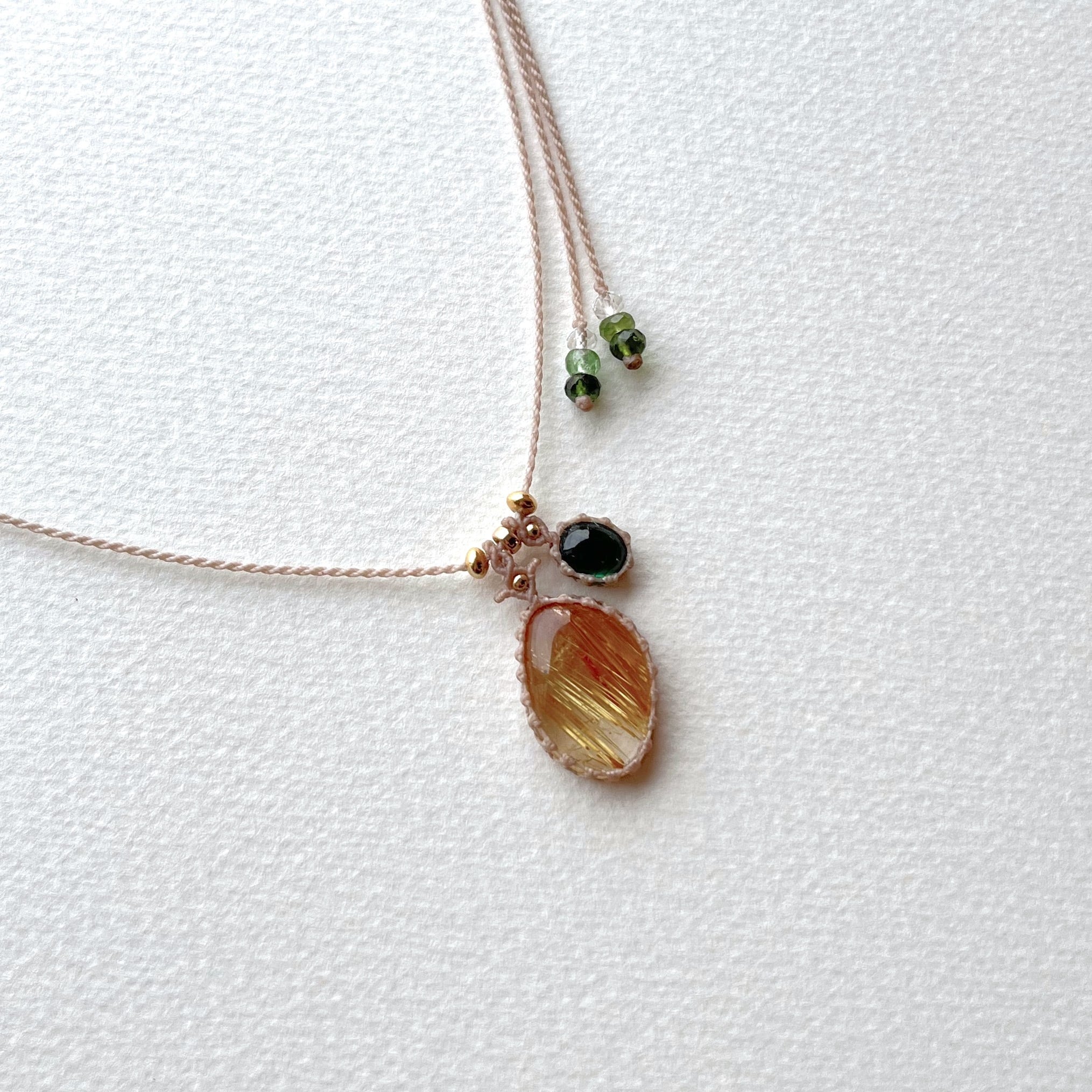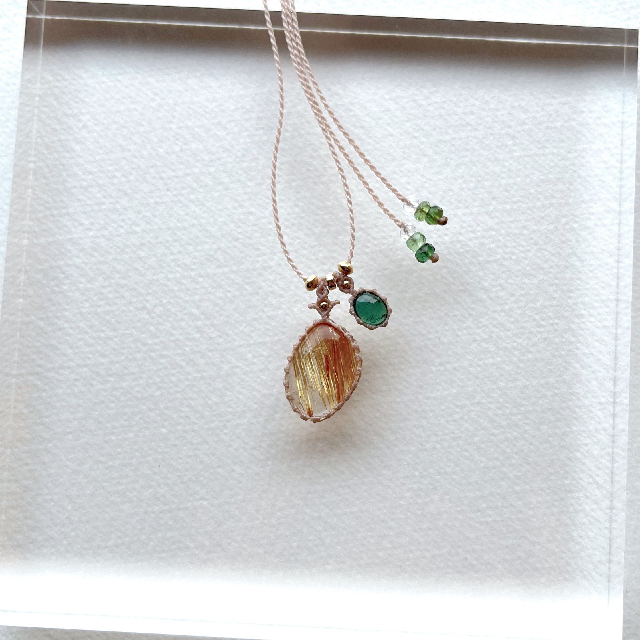 ルチルクォーツとグリーントルマリンのマクラメ編み 天然石ネックレス