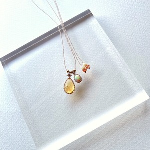 ブラジル産シトリンとアフリカ産オパールを使用したマクラメ編み ハンドメイドネックレスです。