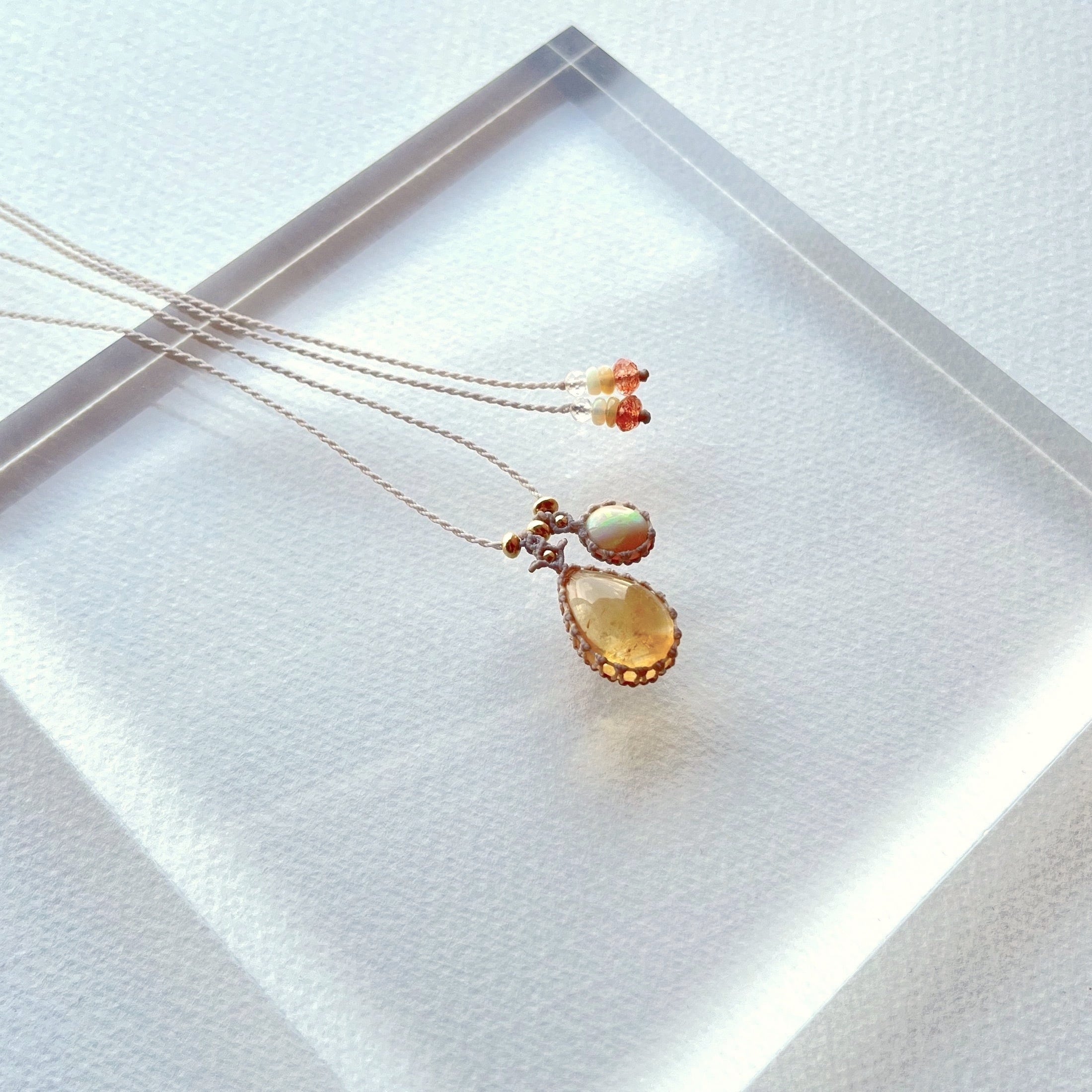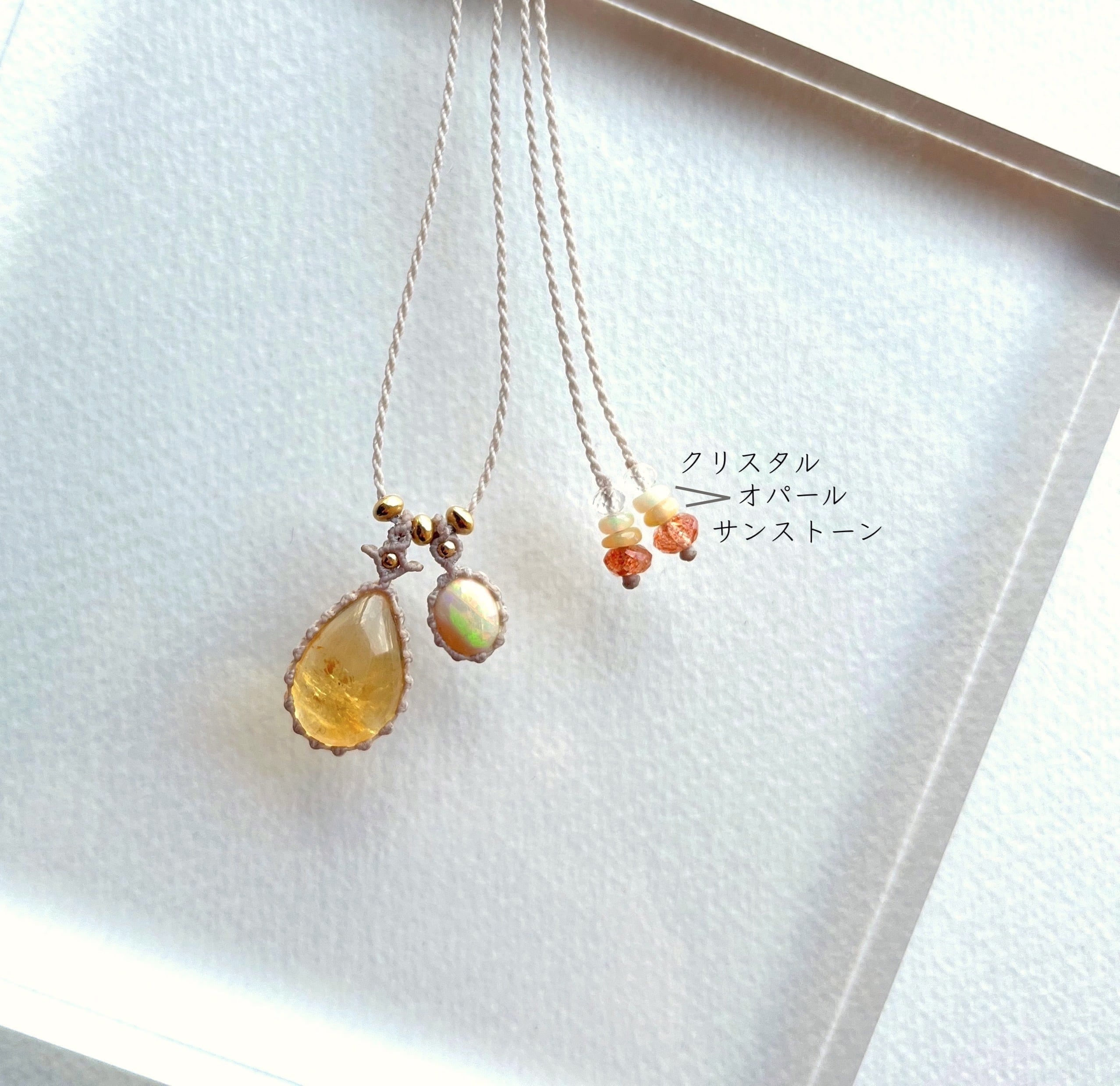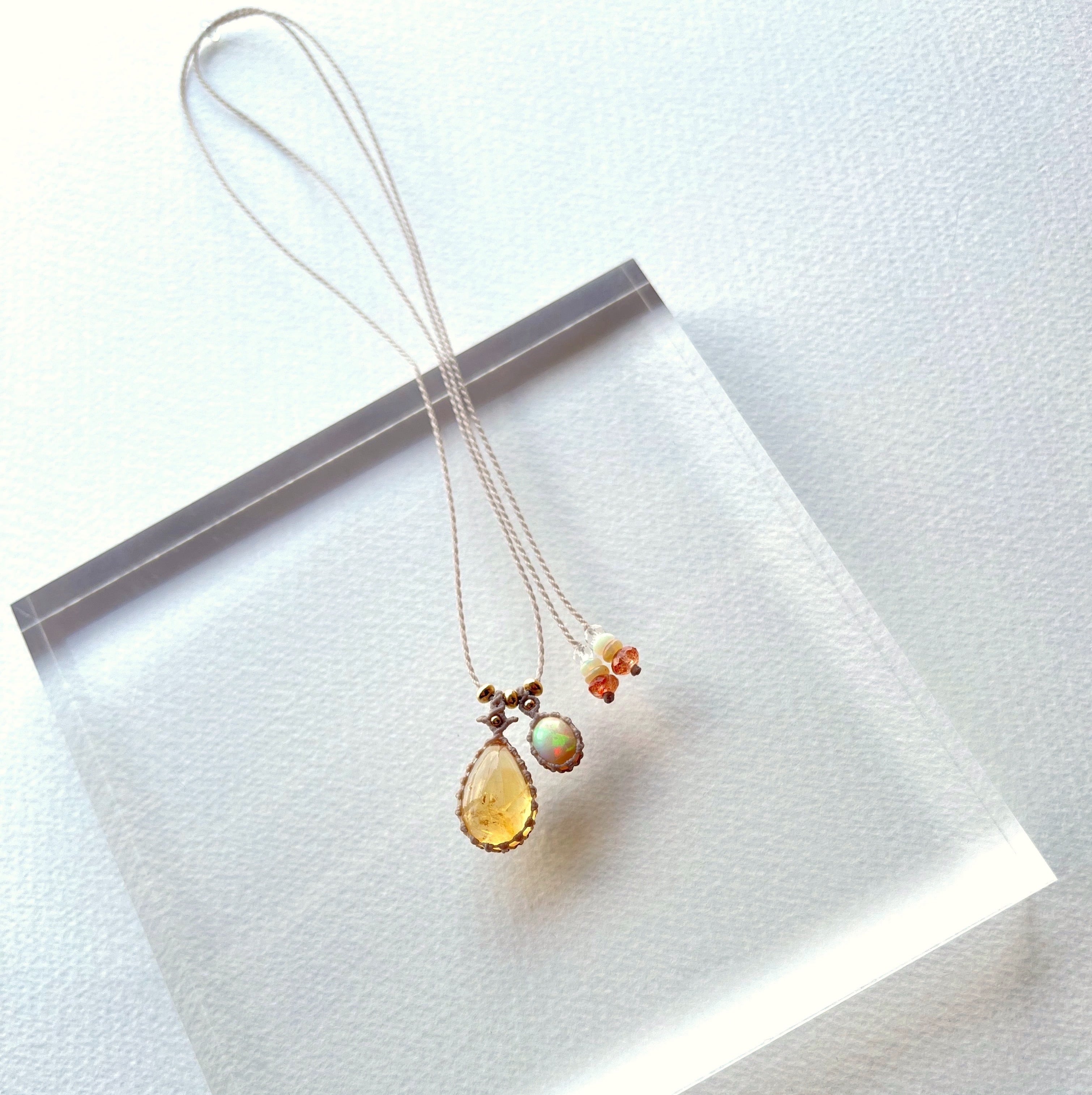 シトリンとオパールのマクラメ編み 天然石ネックレス