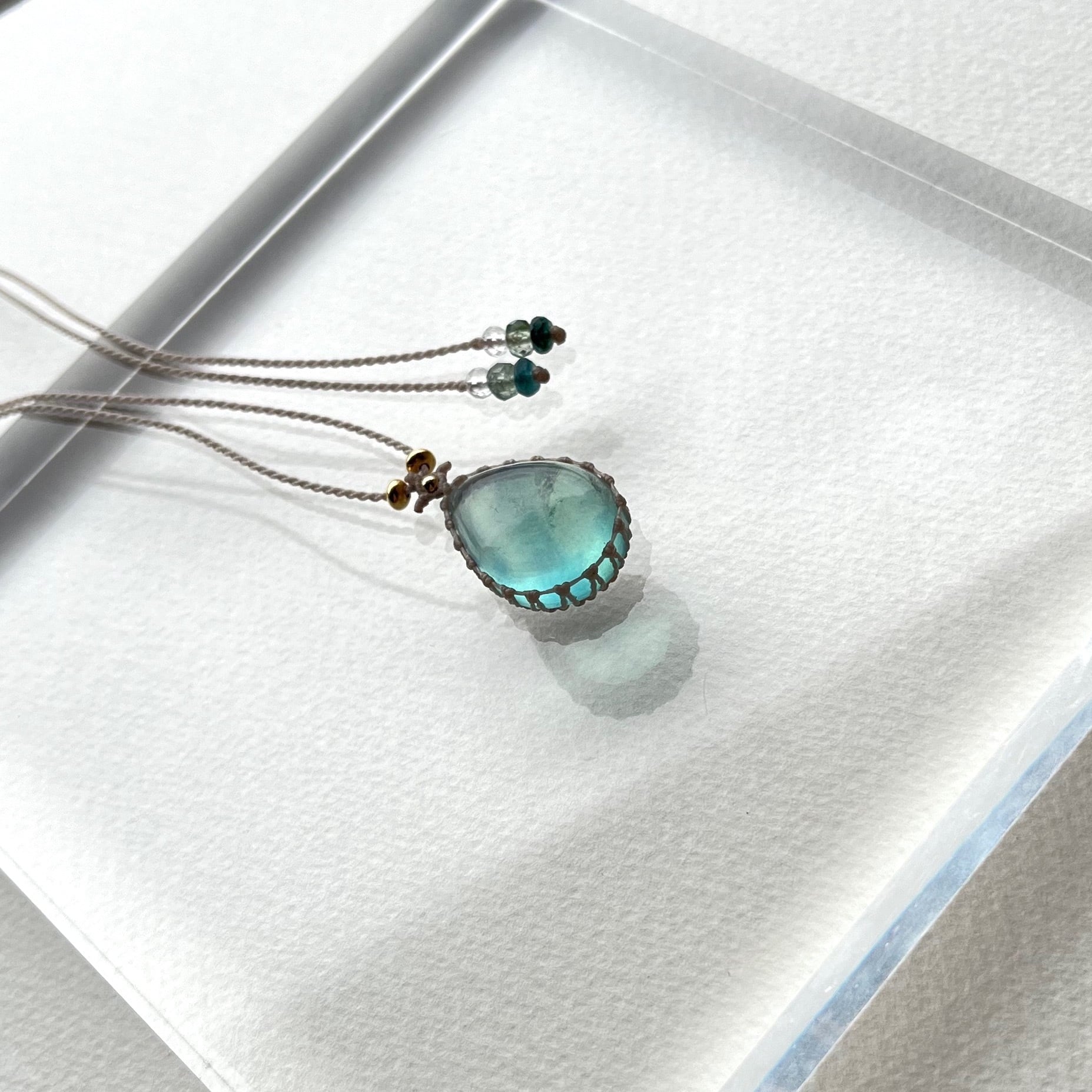 ブラジル産フローライトを使用したマクラメ編み ハンドメイドネックレスです。
