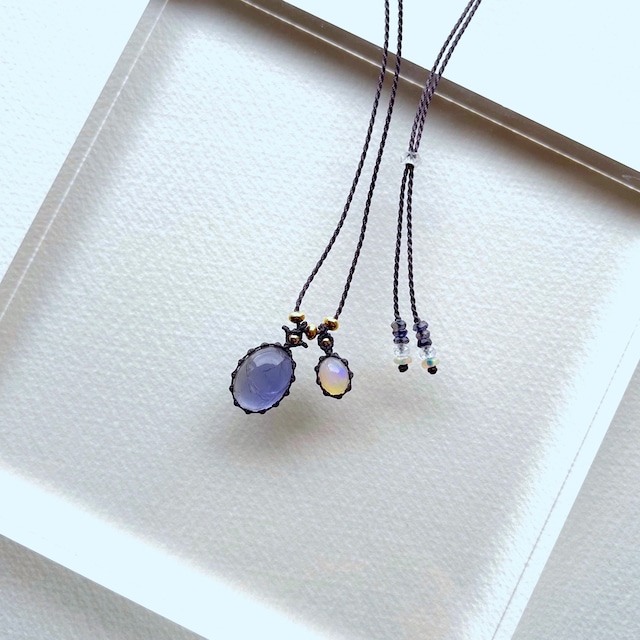 こつぶの石を2つ組み合わせ、0.23mmのコードで仕上げました。