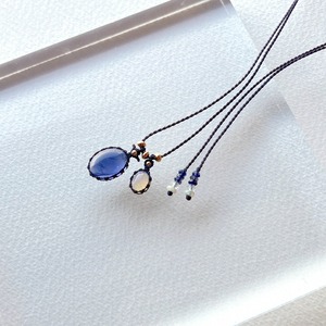 アイオライトとオパールのマクラメ編み 天然石ネックレス