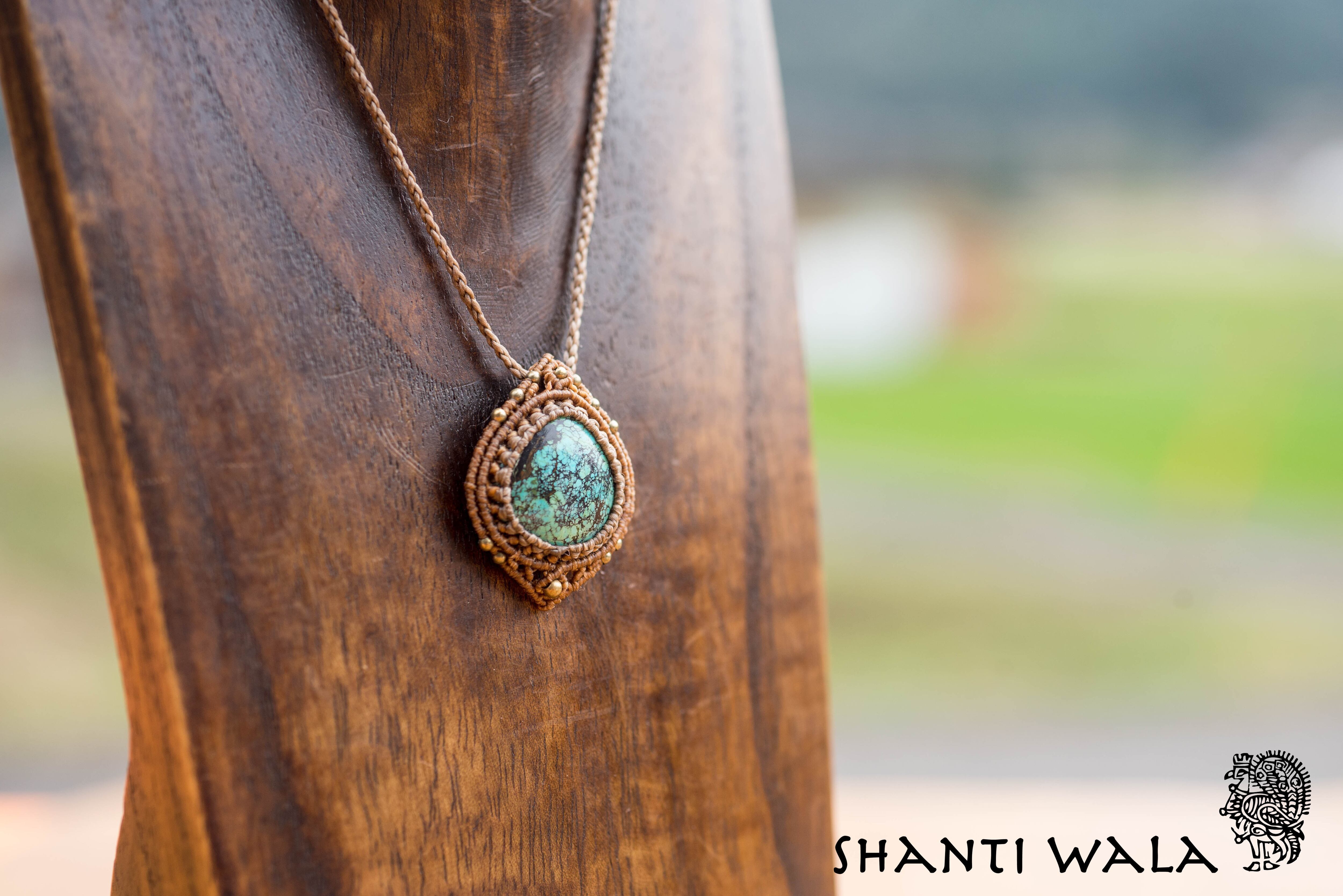チベット産ターコイズを使用したマクラメ編み ハンドメイドネックレスです。