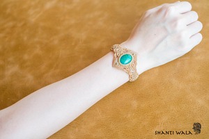 緑がかった色合いのクリソコラとクリスタルビーズを組み合わせ、今回は少し大きめのブレスレットに仕上げました。
