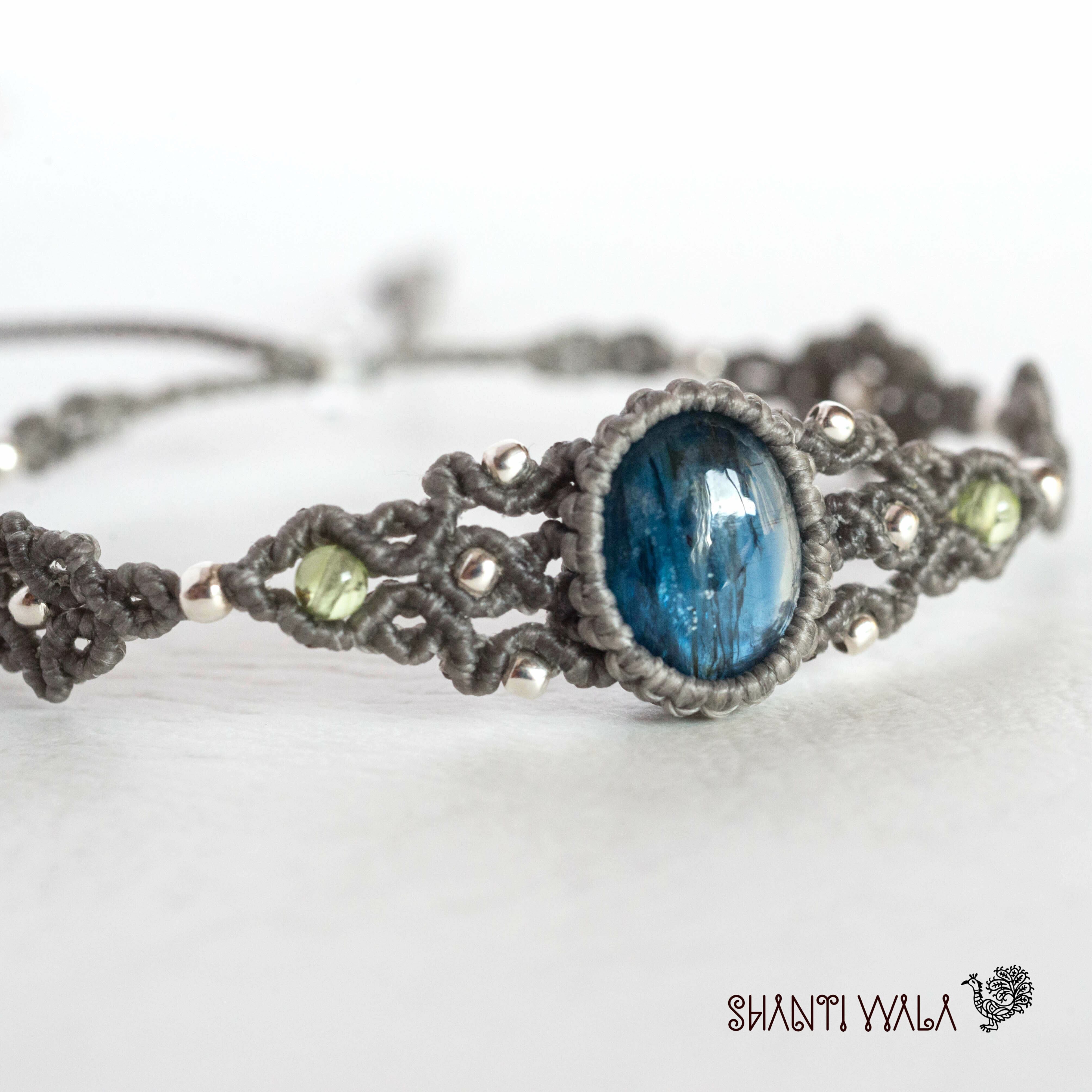 ネパール産カイヤナイトを使用したマクラメ編み ハンドメイドブレスレットです。