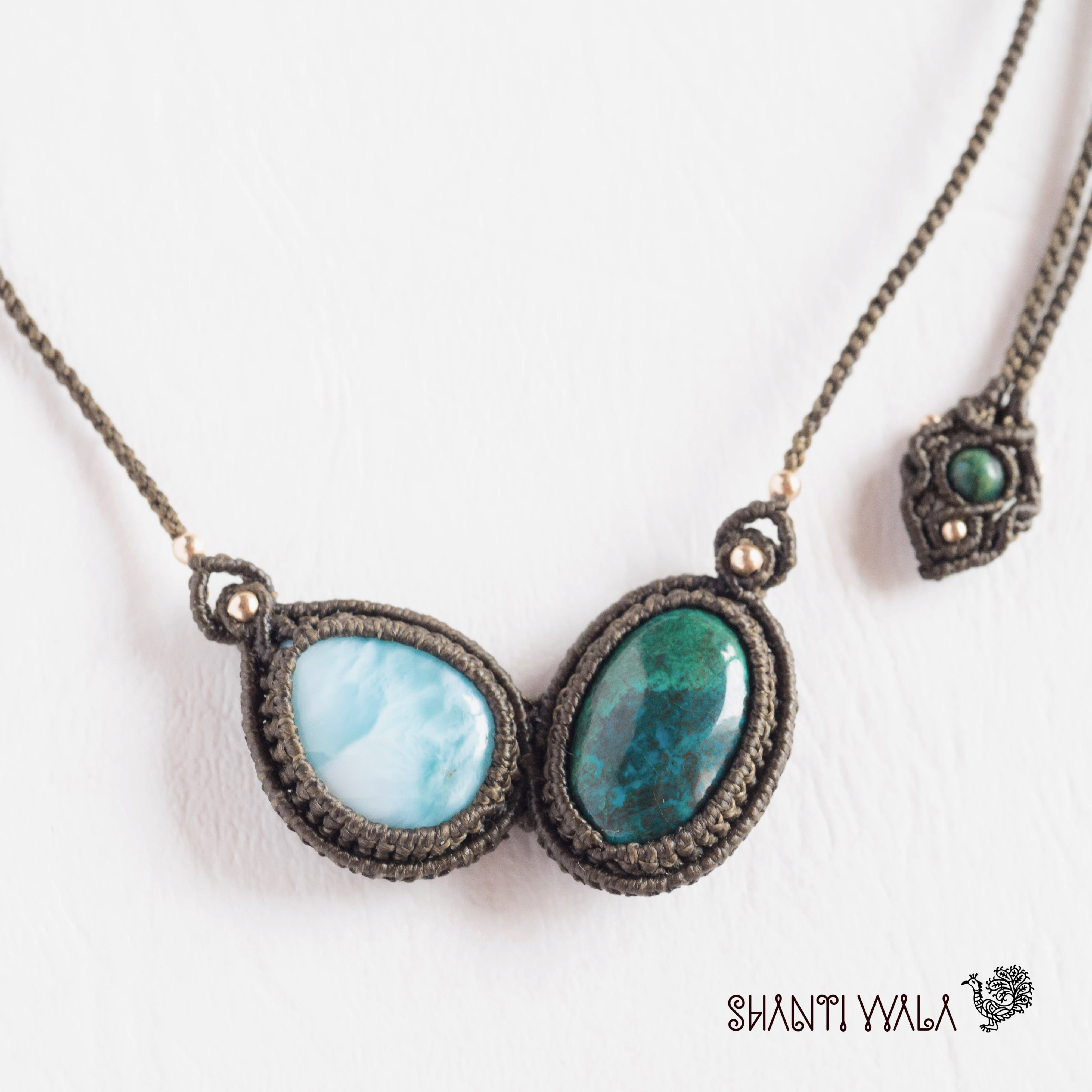 クリソコラ×ラリマーのマクラメ編み 天然石ネックレス