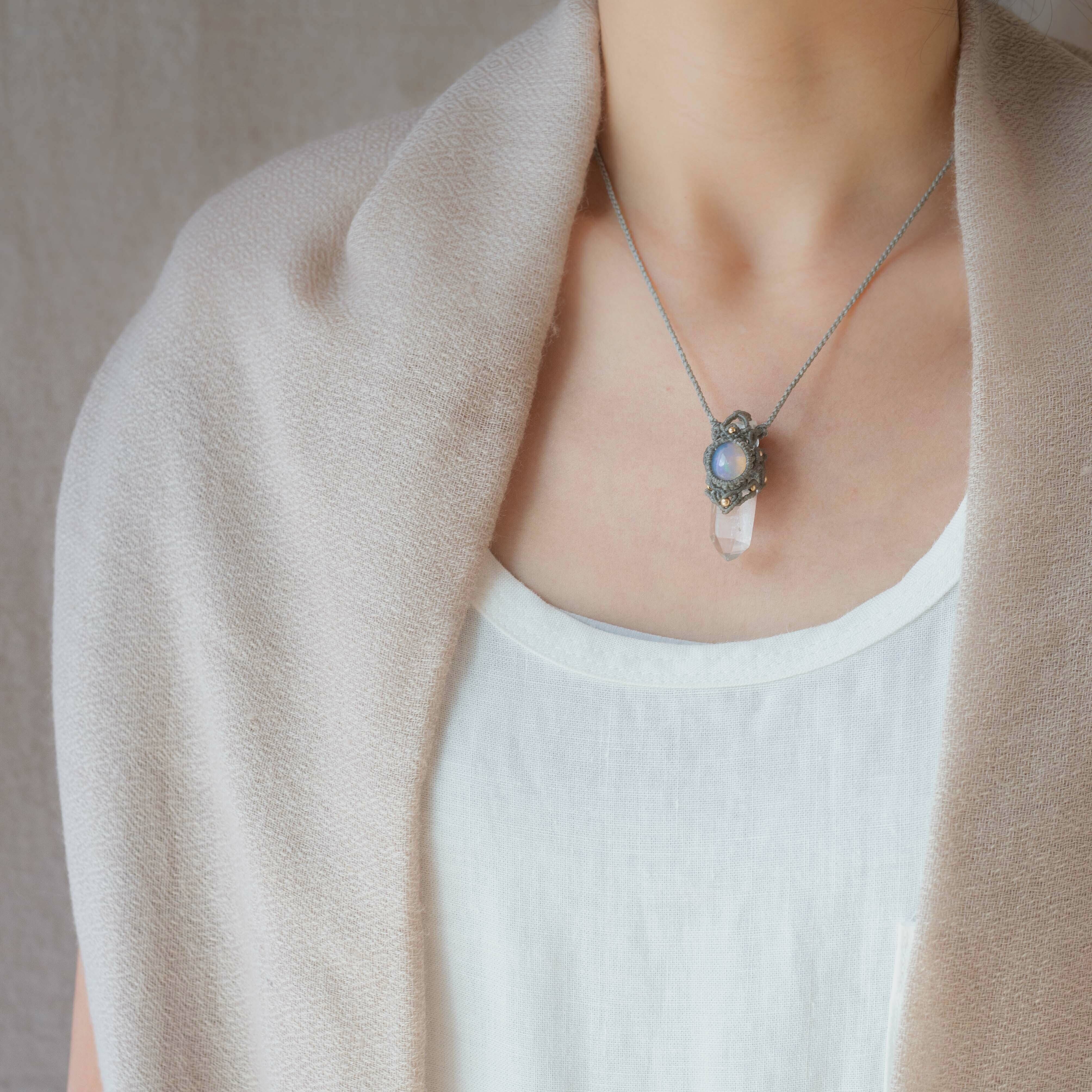 クリスタルとオパールのマクラメ編み 天然石ネックレス