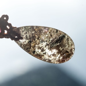 ガーデンクウォーツは、水晶が形成される過程で、鉱物や泥岩を巻き込みながら結晶になった水晶です。水晶の中に自然の風景が閉じ込められたようにも見えるため、「庭園水晶」とも呼ばれています。水晶の中に存在するちいさな箱庭のような世界が山や川等を連想させ、心を癒し、気持ちをリラックスさせる効果があるとも言われています。また、大地の鉱物を豊富にとりこんでいることから、「地に足をつける」という石言葉が付いています。