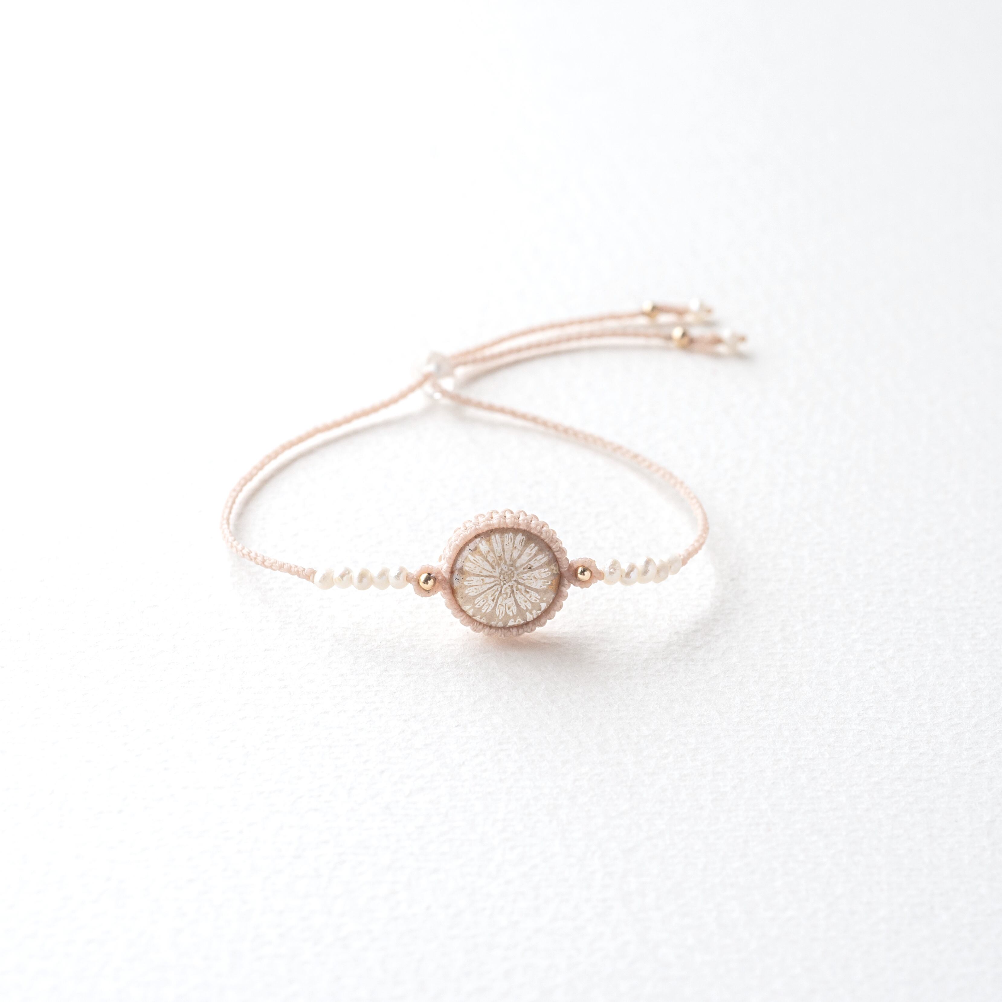インドネシア産フォッシルコーラルを使用したマクラメ編み ハンドメイドブレスレットです。